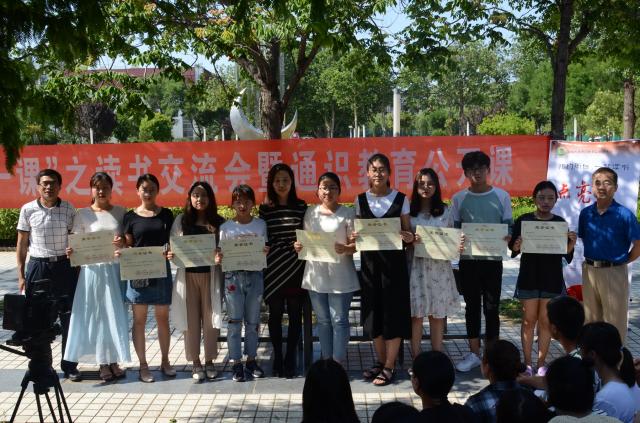 活动对组委会5月份举办的名著阅读读后感征文活动的65位获奖者进行了表彰。历史文化与旅游学院乔炎、后备军官学院张冉、文学院王军梅等5名同学获得特等奖,药学院温延婕、商学院侯文帅、文学院陈晓舟等15名同学获得一等奖。学生工作处副处长刘东莲、宣传部宣传教育科科长秦治洲为获奖同学颁发了证书。组委会共收到来自14个学院149个团支部的600余篇读后感作品,活动进一步浓郁了学校的读书思考氛围。当日,获奖者代表乔炎、温廷婕、侯文帅、陈晓舟等4位同学交流分享了聊城大学师生5月份师生共读名著书目——《企业的性质》《论语》读后感。现场书韵芬芳,展现了我校良好的文化氛围。
