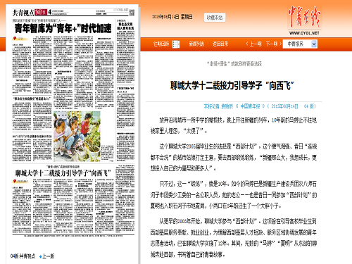 【中国青年报】聊城大学十二载接力引导学子“向西飞”