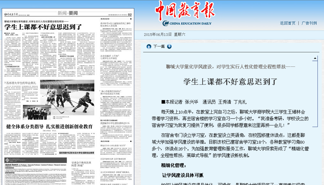【中国教育报】聊城大学量化学风建设 对学生实行人性化管理全程性帮扶