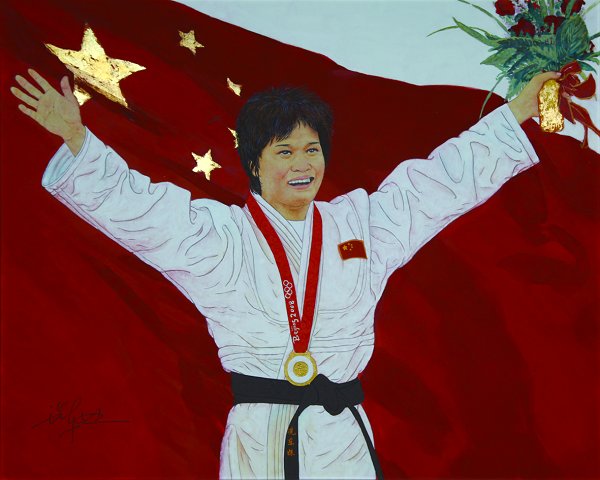 李芃是我校美术学院的青年女教师,近年来,她利用古老的岩彩技术,为著名体育运动明星创作了一系列肖像画,包括姚明、刘翔、许海峰、冼东妹、杜丽、邓亚萍、李宁等。据了解,岩彩画以矿物岩为材料作画,在两千年前曾是中国绘画的主流,目前新疆克孜尔、敦煌和西安等地尚有保存的众多壁画就是岩彩所画。 “ 岩彩画的特点是永不褪色,这和我所画运动员的优秀品质和境界是相匹配的。 ” 李芃希望用一种艺术方式将运动员永不言败、顽强拼搏的精神传承下去,希望它能成为一种社会精神。